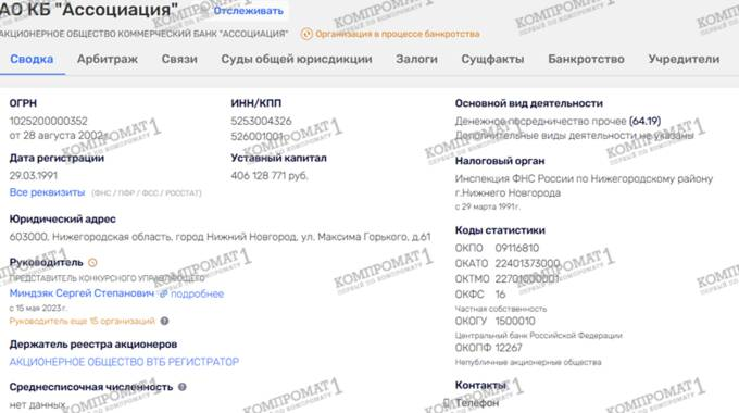 Вообще на рассмотрении Арбитражного суда Нижегородской области находится 4 обособленных спора по заявлениям АСВ о взыскании убытков с ряда лиц из-за вывода активов из банка «Ассоциация»: по факту хищения финансовых средств из кредитной организации возбуждено уголовное дело. Банк России отозвал у банка Ассоциация лицензию еще в 2019 году из-за того, что в его отчетности отсутствовал валютный остаток в VTB Europe Bank на более чем 3,8 млрд рублей. Это более чем в два раза превысило величину собственных средств банка.
