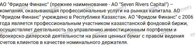 Далее на сайте АО «Фридом Финанс» появилось официальное заявление. В нем говорится, что сама компания от своих недобросовестных сотрудников пострадала не меньше, ведь нанесен большой ущерб репутации.