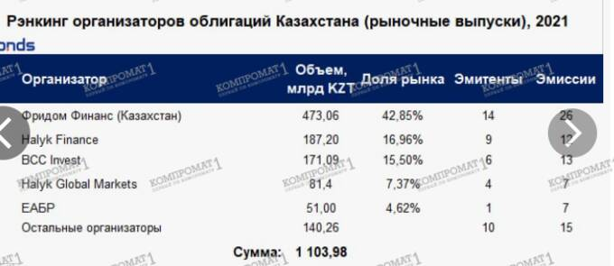 Рэнкинг организаторов облигаций Казахстана