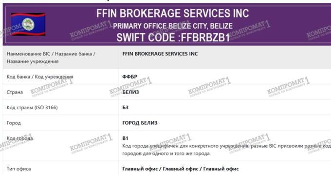 В центре скандала — офшорная «дочка» FFIN Brokerage Services Inc.: эта контора зарегистрирована в Белизе.